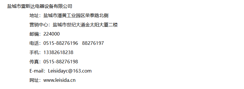 發(fā)布者:鹽城市雷斯達電器設備有限公司 瀏覽:333